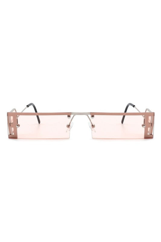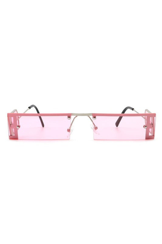 Rectangle Narrow Slim Tinted Flat Top Sunglasses